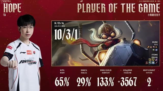 本局MVP给到团战发挥出色的下路Hope的飞机。本场比赛的MVP给到中单Shanks。