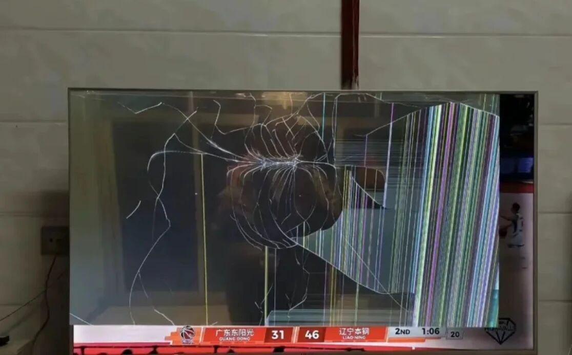 广东男篮在主场惨败给了辽宁男篮,广东球迷对此无法接受。有球迷晒出照片,表示自己看这场比赛时非常愤怒,直接将电视机给砸坏了。从屏幕显示来看,当时应该是在比赛打到第二节的时候,该球迷就因为生气上头了。