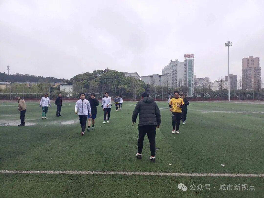 训练场上,队员们在教练组指导下,有序开展热身、传接配合、战术跑位等专项训练。大家一丝不苟、专注投入,每一次传球、每一趟跑动都力求精准高效,在微凉春雨中凝聚起备战合力。